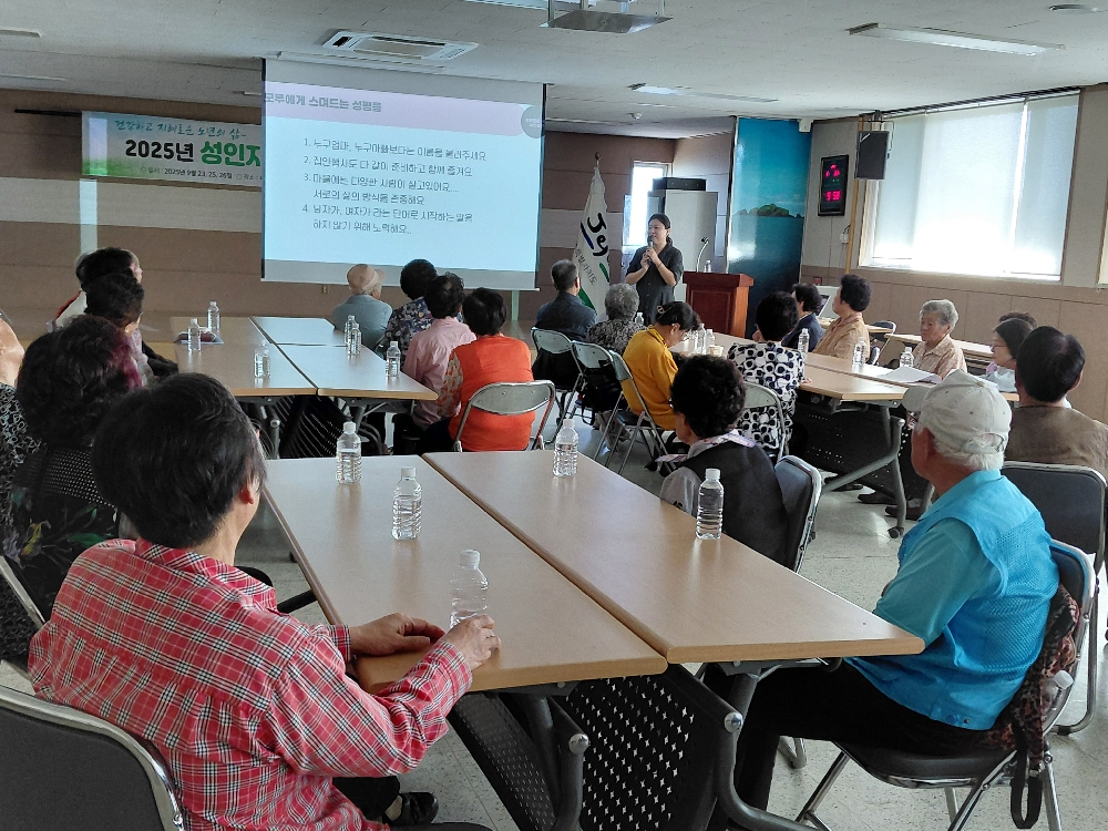○일시: 9월23일(수) ~ 26(금) 09:30~10:20 ○장소: 제주시 관 내 노인맞춤돌봄서비스 각 수행기관 ○대상: 제주시 관 내 홀로사는어르신 180명 ○내용: 구영준 (제주성교육센터 대표),송은지(제주성교육센터) 전문강사님을 모시고 일상생활에서의 성차별 문제를 이해하고, 어르신들의 성인지 감수성을 향상시켜 건강한 소통문화형성에 도움을 주기 위한 교육이 진행되었다. |