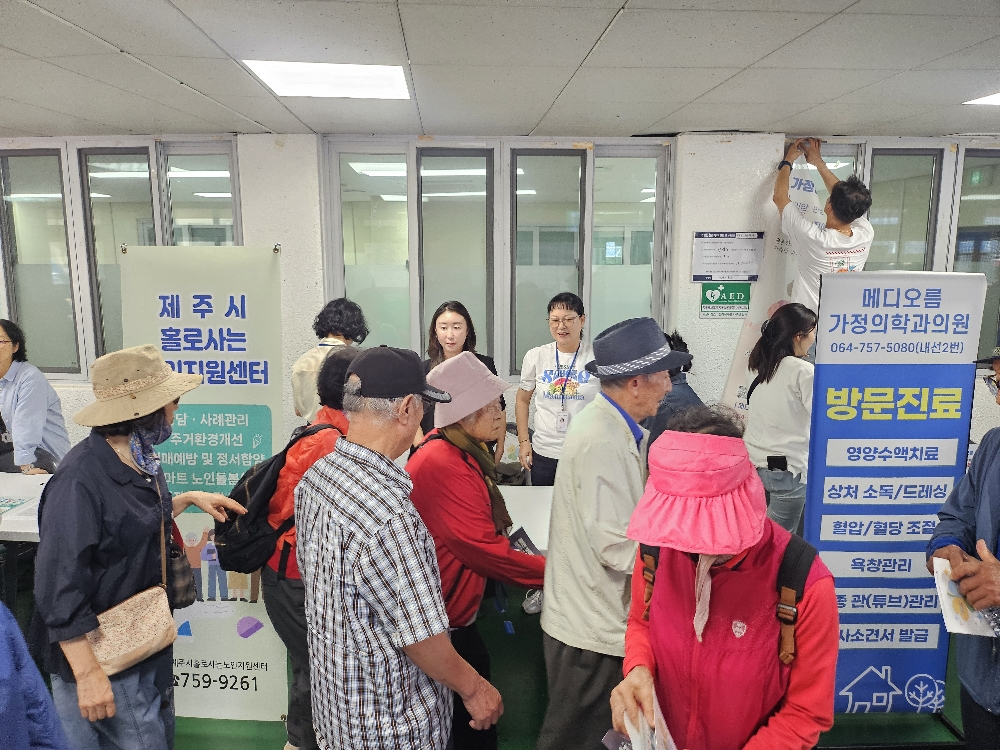 일시 : 2025년10월2일(목) 장소 : 한라체육관 사업내용 : 제주시에서 개최한 노인의 날 행사에 참여하여 기관 홍보 및 노인인식개선 사업을 실시함으로서 복지사각지대 해소 및 긍정적인 노인인식을 만드는데 기여하고자 사업을 진행하였다. |